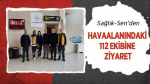 Sağlık-Sen Genel Başkanı Mahmut Faruk Doğan ve Genel Başkan Yardımcısı Yasin Barutçu, havaalanında görev yapan 112 Acil...
